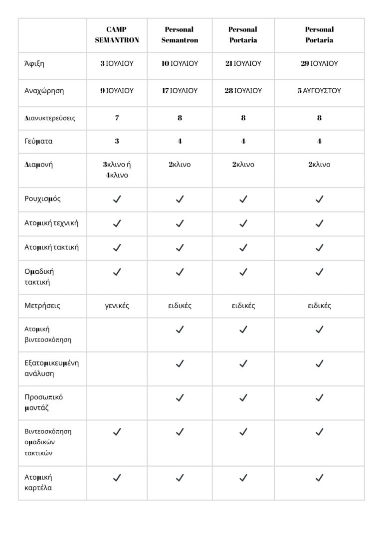 με συνοδεία προπονητών και υπευθύνων όπως και τυχόν βόλτα στο χωριό πάντα με συνοδεία προπονητών. - Στην διάρκεια του Camp υπάρχουν και επισκέψεις από VIP αθλητών.